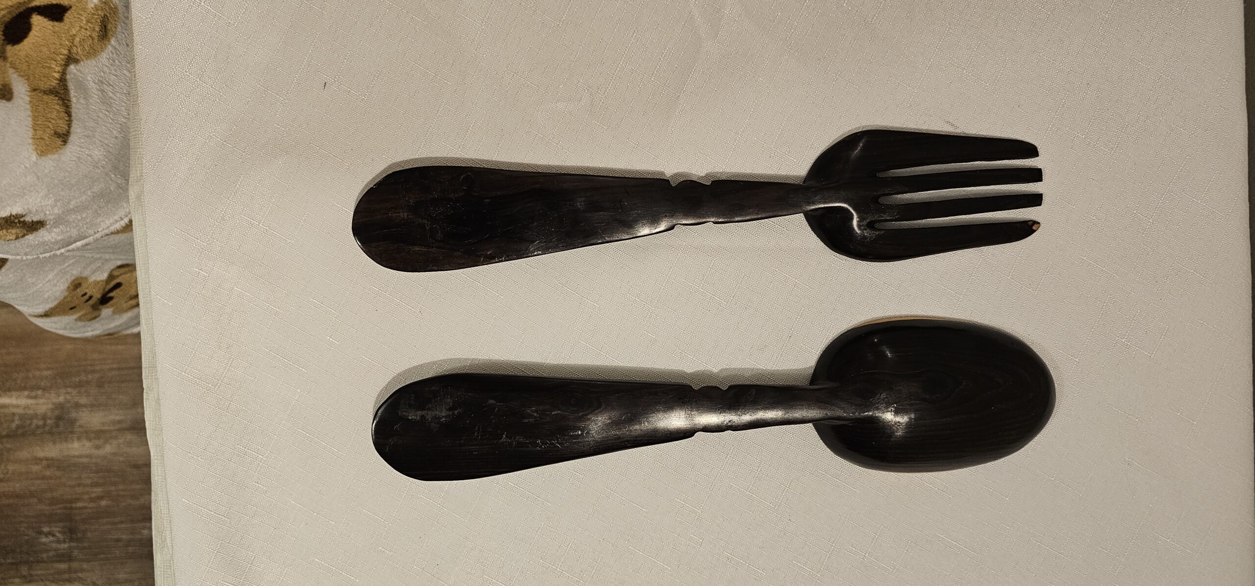 Handcrafted wooden serving utensils featuring elegant designs, with intricate detailing on the handles, perfect for adding a touch of artistry to your table setting.
